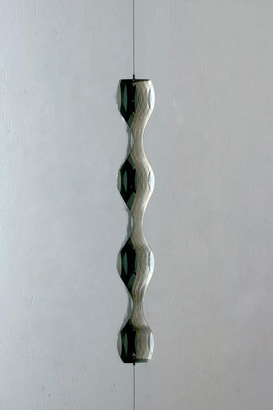 For Duo Projects, Iezumi presents works developed through a newly discovered laminating technique that introduces a seamless emerald-green nuance within the glass. The presentation includes pieces from the Move series, inspired by the cascading flow of waterfalls, including a monumental work that was part of his extensive survey exhibition at the Toyama Glass Art Museum in 2017; Projection, which subtly distorts the surrounding environment; as well as works from the Form and Floating series, each extending his exploration of light, movement, and spatial perception.